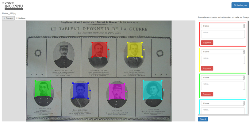 On our side we worked on a tool to help them extract the portraits from the scans. It allowed them to ensure a consistent size for all the images as well as make sure the faces were correctly detected.
